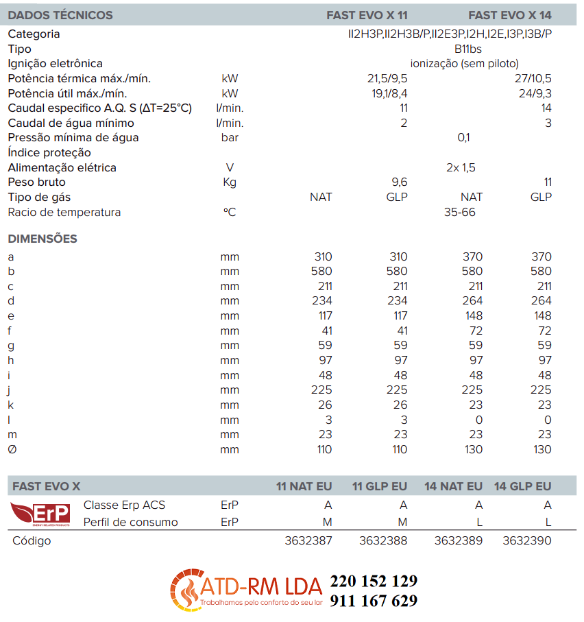 Ficha Técnica Esquentador Ariston Fast Evo X